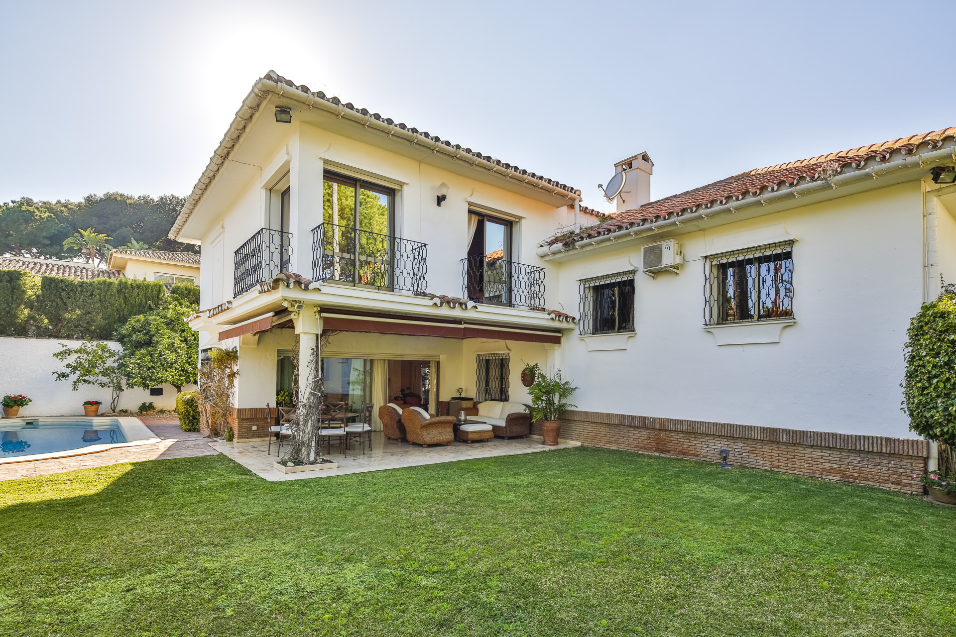 The exterior of the villa is equally impressive, with a meticulously manicured private garden, an inviting swimming pool and a covered terrace perfect for enjoying the Mediterranean climate. It also includes a barbecue area and an automatic irrigation system. The property has a garage and is in good condition, ready to move into. Its proximity to essential services and its location in a quiet and exclusive area make it a unique opportunity for those looking for a home by the sea in Marbella.
