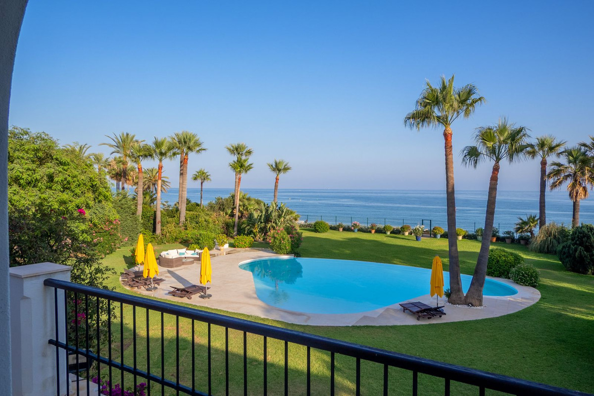Situada en la exclusiva comunidad cerrada 24/7 de Estepona, esta impresionante villa de estilo mediterráneo frente al mar ofrece una experiencia de vida excepcional.